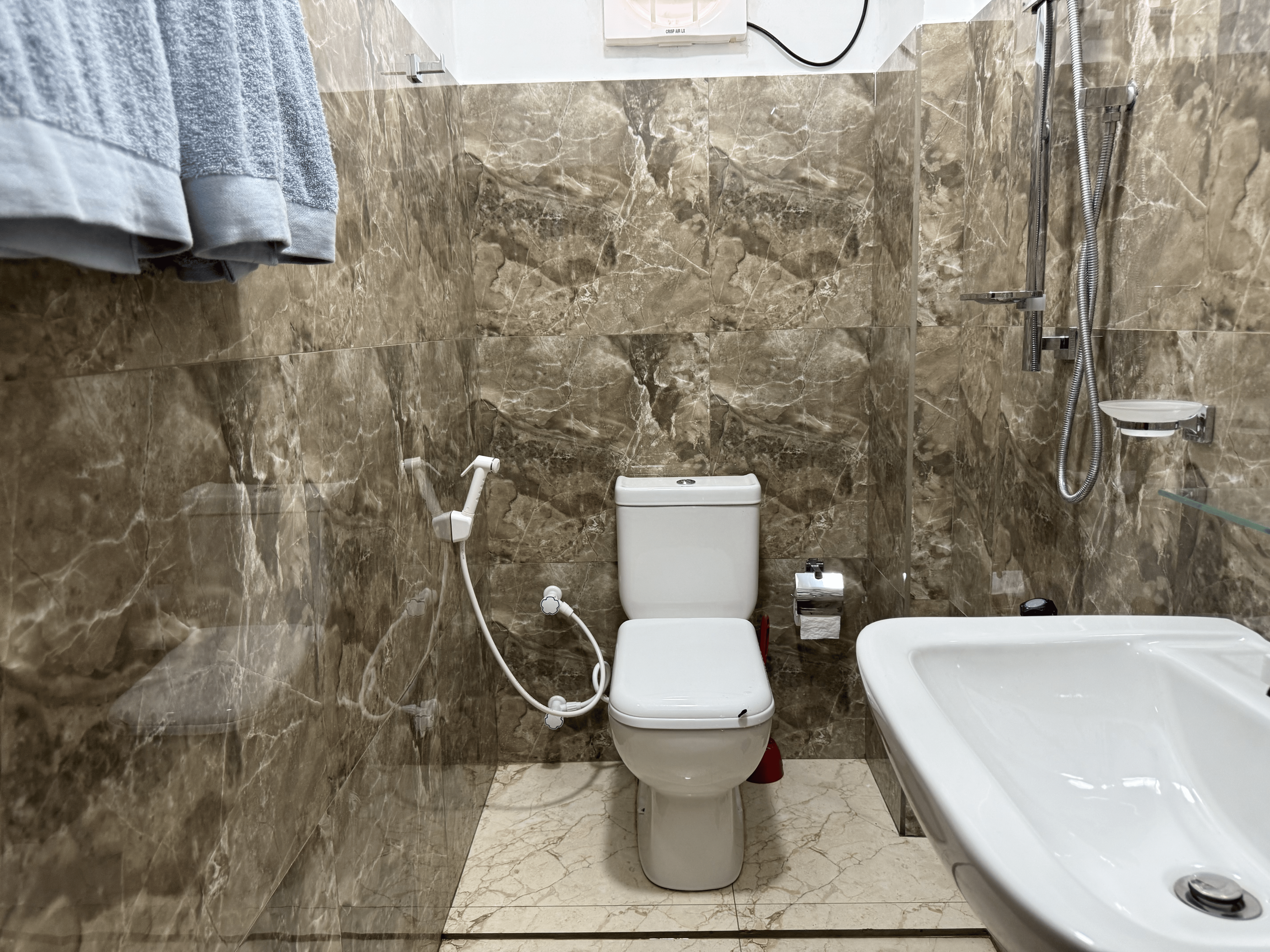 This room is designed with a modern style and equipped with essential facilities. Enjoy little comforts like free Wi-Fi, a cozy AC environment, access to hot bath amenities, and convenient transportation services.